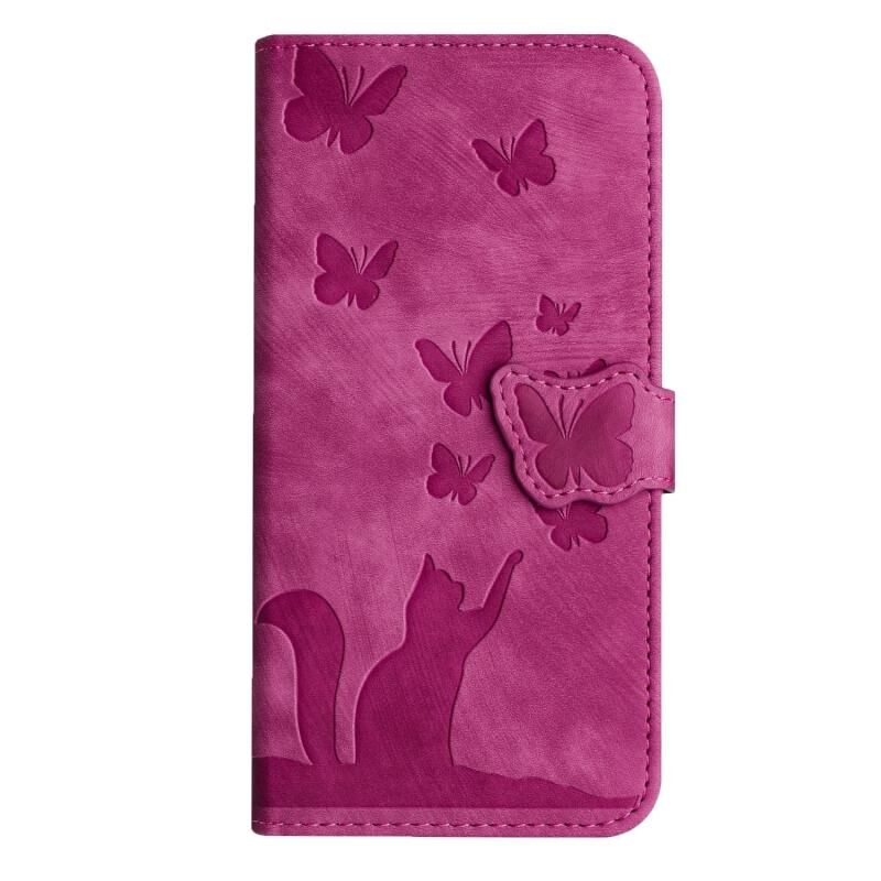 Θήκη τηλεφώνου από δέρμα με ανάγλυφο σχέδιο πεταλούδας και γάτας για Redmi 14C 4G (Ροζ)