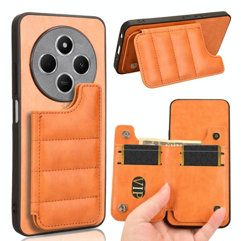 Για Redmi 14C 4G αγελάδα μοτίβο ραπτικής κάρτα τσάντα τηλέφωνο υπόθεση (πορτοκαλί)