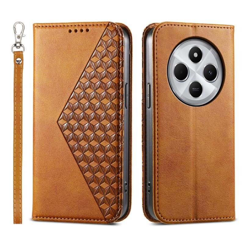For Redmi 14C 4G Cubic Grid Calf Texture Magnetic Leather Phone Case(Yellow)