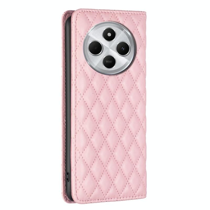 Για Redmi 14C 4G Diamond Lattice μαγνητική δερμάτινη θήκη Flip τηλέφωνο (ροζ)