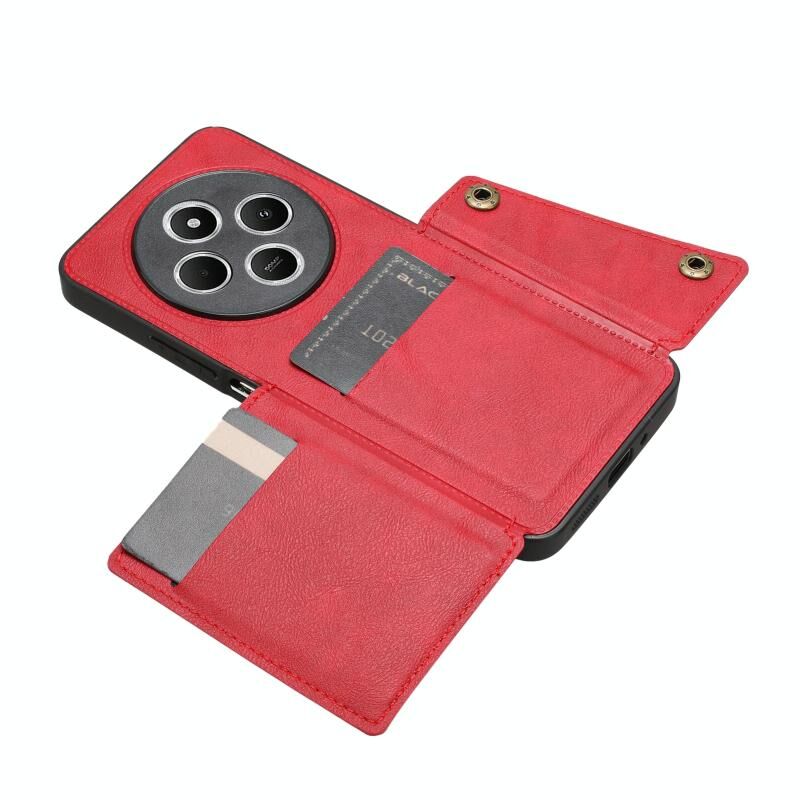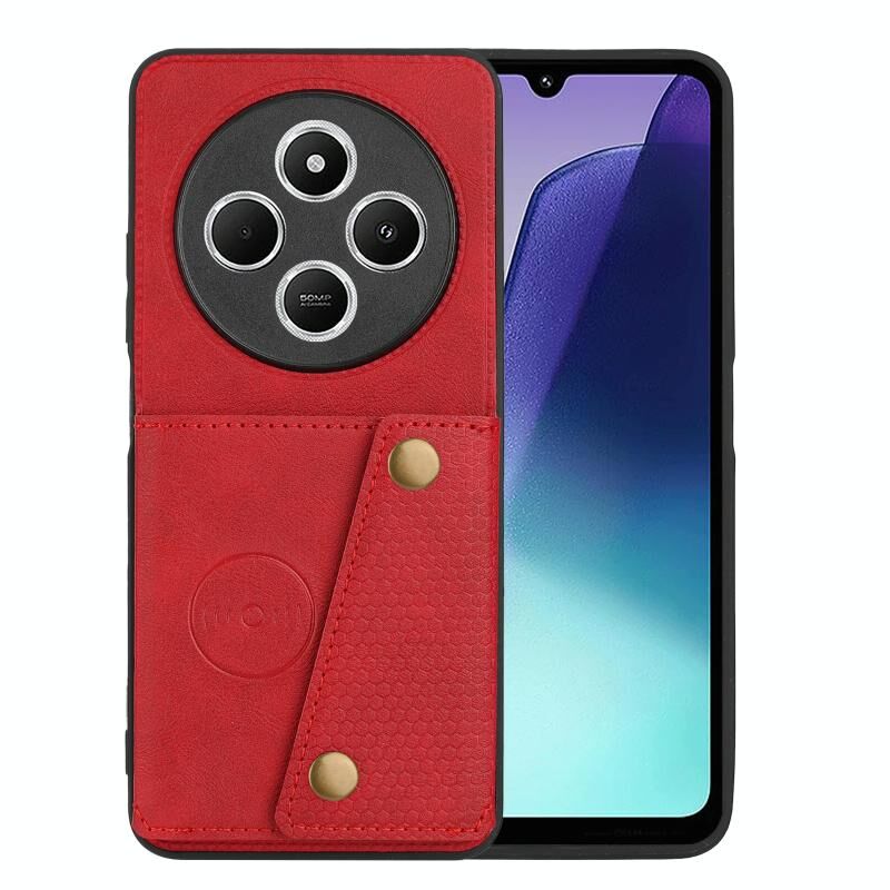Για Redmi 14C 4G διπλή πόρπη κάρτα υποδοχές μαγνητική υπόθεση τηλέφωνο (κόκκινο)