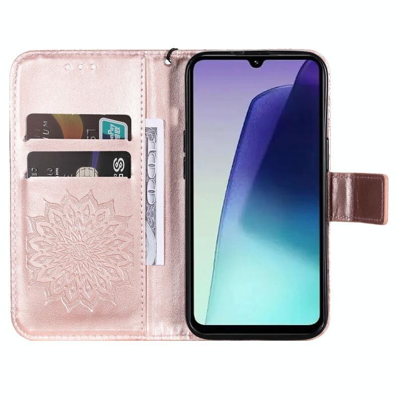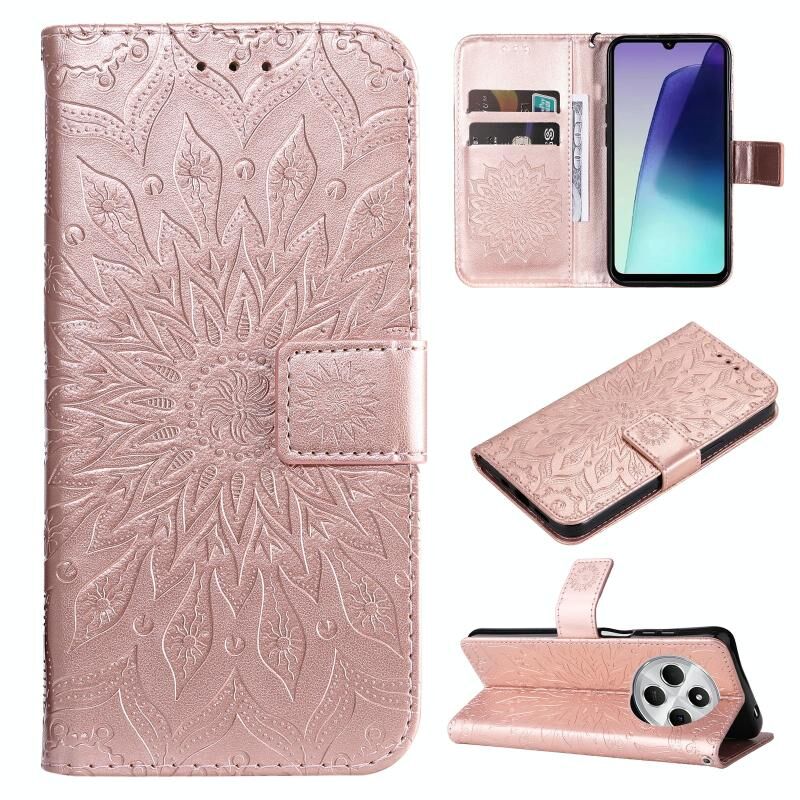 Για Redmi 14C 4G ανάγλυφο ηλιοτρόπιο μοτίβο Flip υπόθεση τηλεφώνου δέρμα (Rose Gold)