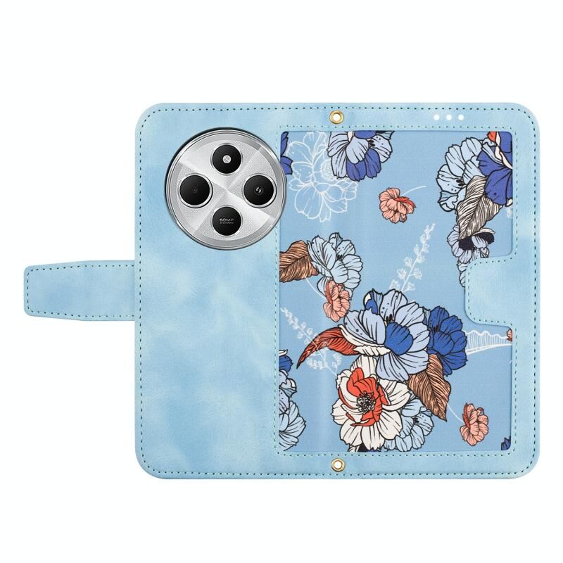 Θήκη τηλεφώνου από δέρμα με λουλουδάτο σχέδιο και λουρί για Redmi 14C 4G (Ανοιχτό Μπλε)