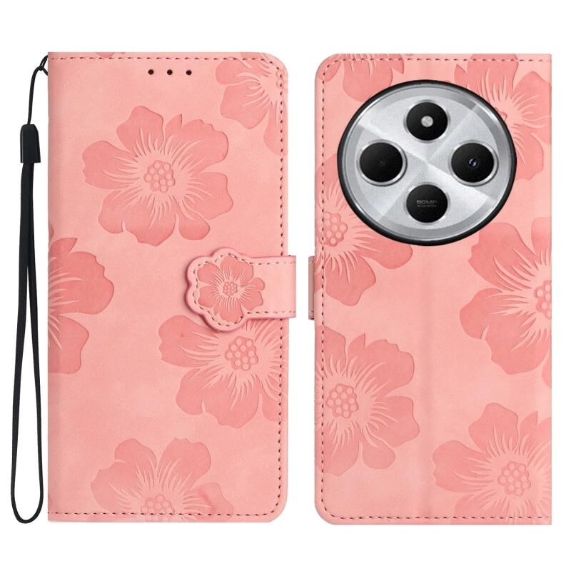 For Redmi 14C 4G Flower Embossing Pattern Leather Phone Case(Pink)