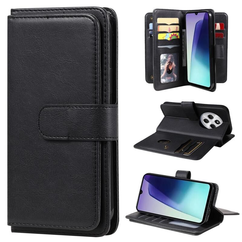 Για Redmi 14C 4G Global Πολυλειτουργικό πορτοφόλι 10 υποδοχές καρτών Δερμάτινη θήκη τηλεφώνου (Μαύρο)