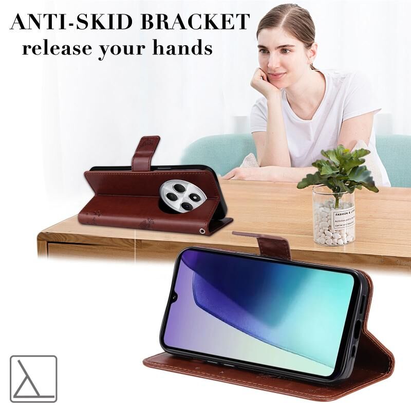 For Redmi 14C 4G Global Tree & Cat Embossed Pattern Flip Leather Phone Case(Coffee)