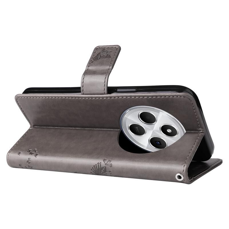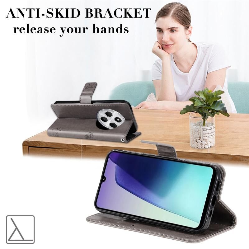 For Redmi 14C 4G Global Tree & Cat Embossed Pattern Flip Leather Phone Case(Grey)