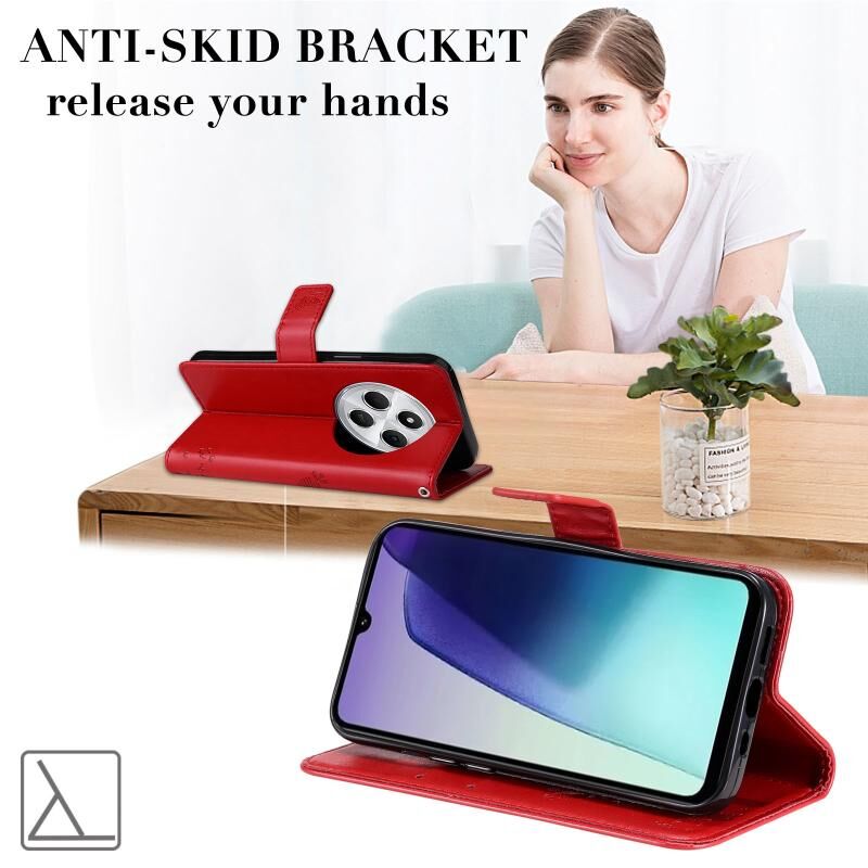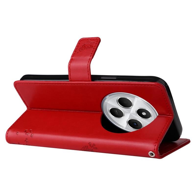 For Redmi 14C 4G Global Tree & Cat Embossed Pattern Flip Leather Phone Case(Red)
