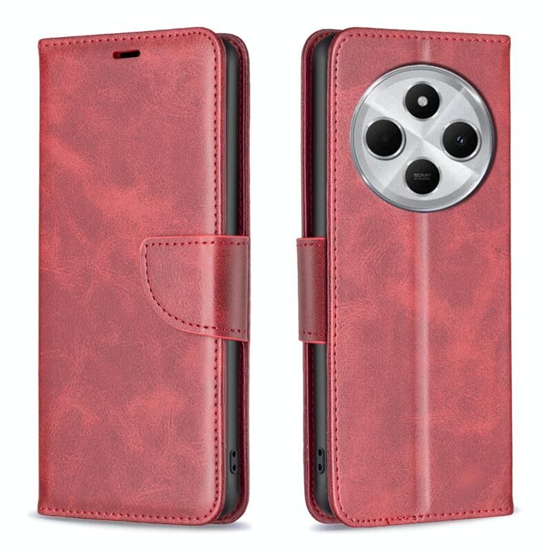 Για Redmi 14C 4G Lambskin υφή καθαρό χρώμα Flip δέρμα τηλέφωνο υπόθεση (κόκκινο)