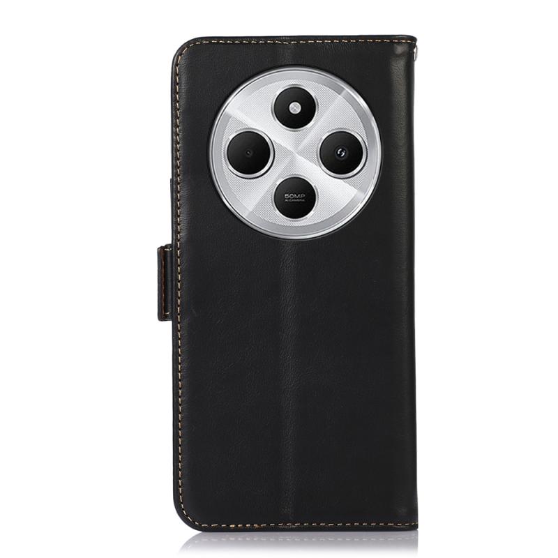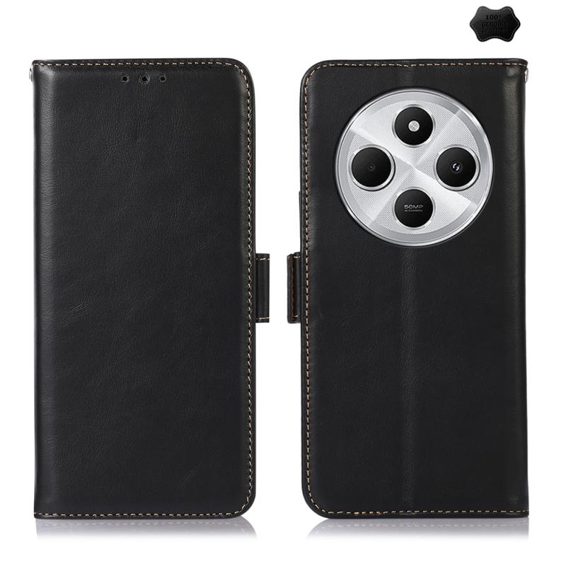For Redmi 14C 4G Magnetic Crazy Horse Texture Genuine Leather RFID Phone Case(Black)
