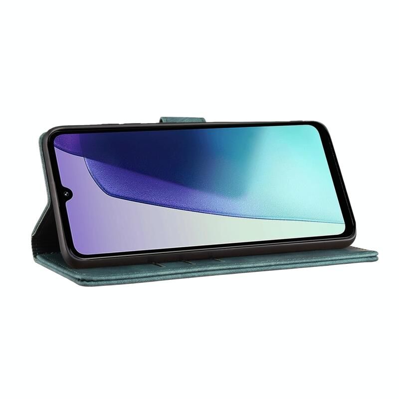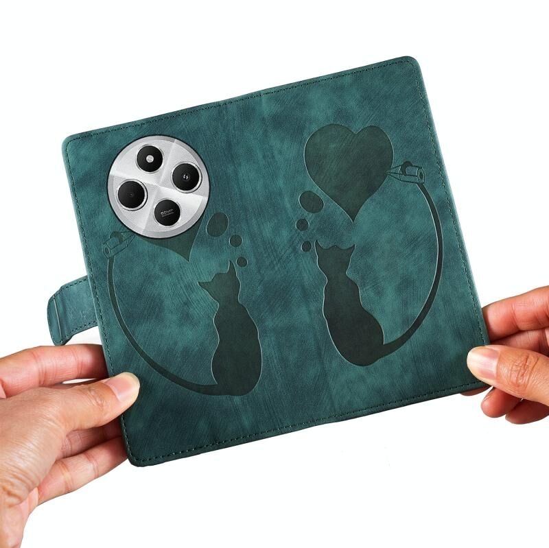 Θήκη τηλεφώνου από δέρμα με ανάγλυφο σχέδιο καρδιάς και γάτας για Redmi 14C 4G (Πράσινο)