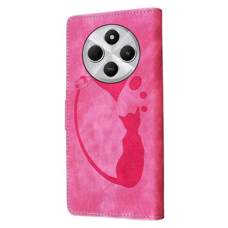 Θήκη τηλεφώνου από δέρμα με ανάγλυφο σχέδιο καρδιάς και γάτας για Redmi 14C 4G (Πράσινο)