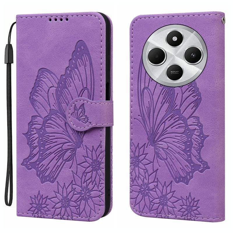 Θήκη τηλεφώνου από δέρμα με οριζόντιο άνοιγμα για Redmi 14C 4G, με ανάγλυφο σχέδιο πεταλούδων και ρετρό αίσθηση (Μαύρο)