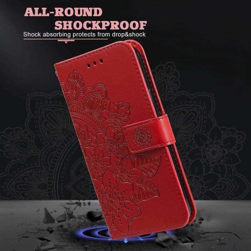 For Redmi 14C 4G Seven-petal Flowers Embossing Leather Phone Case(Red)