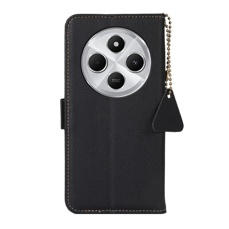 Θήκη τηλεφώνου από γνήσιο δέρμα TJ με μαγνητικό κλείσιμο στο πλάι για Redmi 14C 4G (Μαύρο)