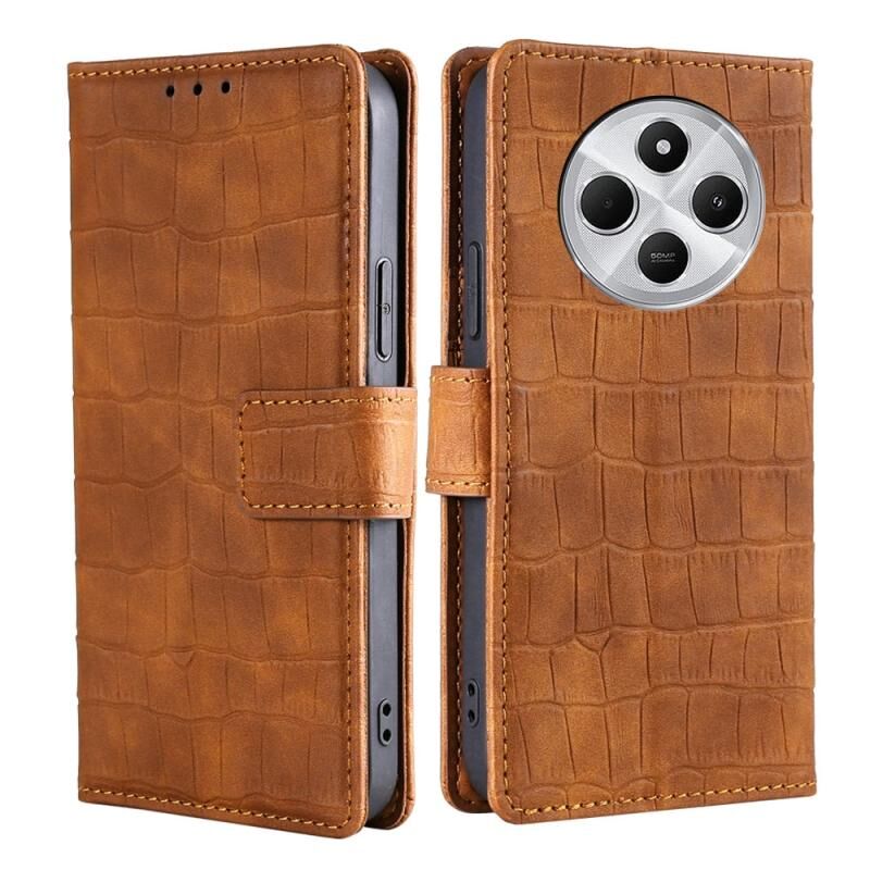 For Redmi 14C 4G Skin Feel Crocodile Magnetic Clasp Leather Phone Case(Brown)