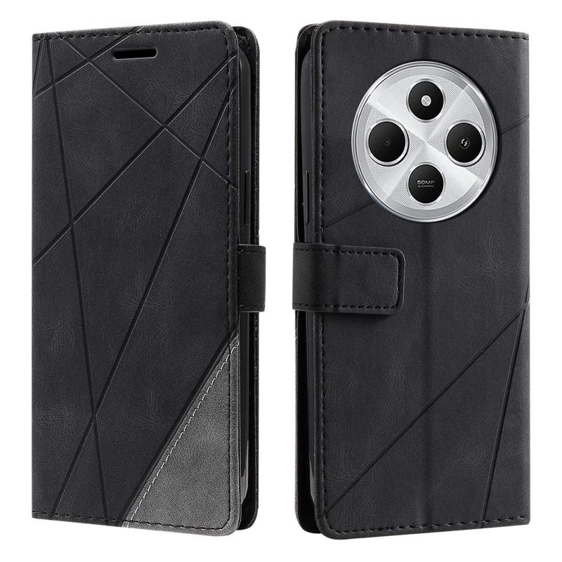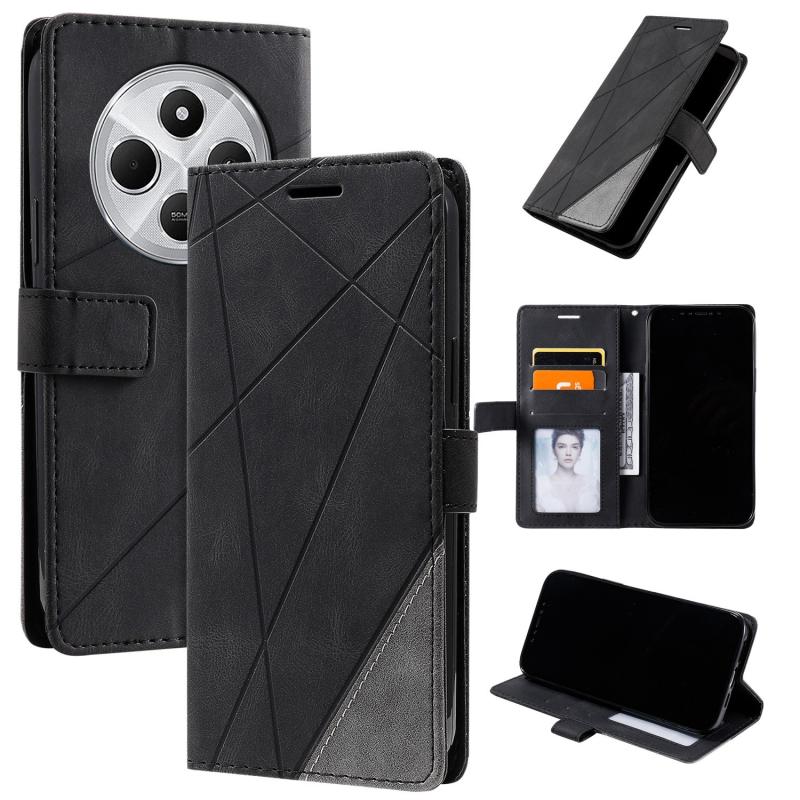 For Redmi 14C 4G Skin Feel Splicing Leather Phone Case(Black)