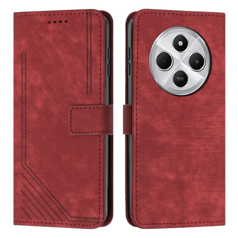 Για Redmi 14C 4G δέρμα Feel ριγέ μοτίβο δερμάτινη θήκη τηλεφώνου (κόκκινο)
