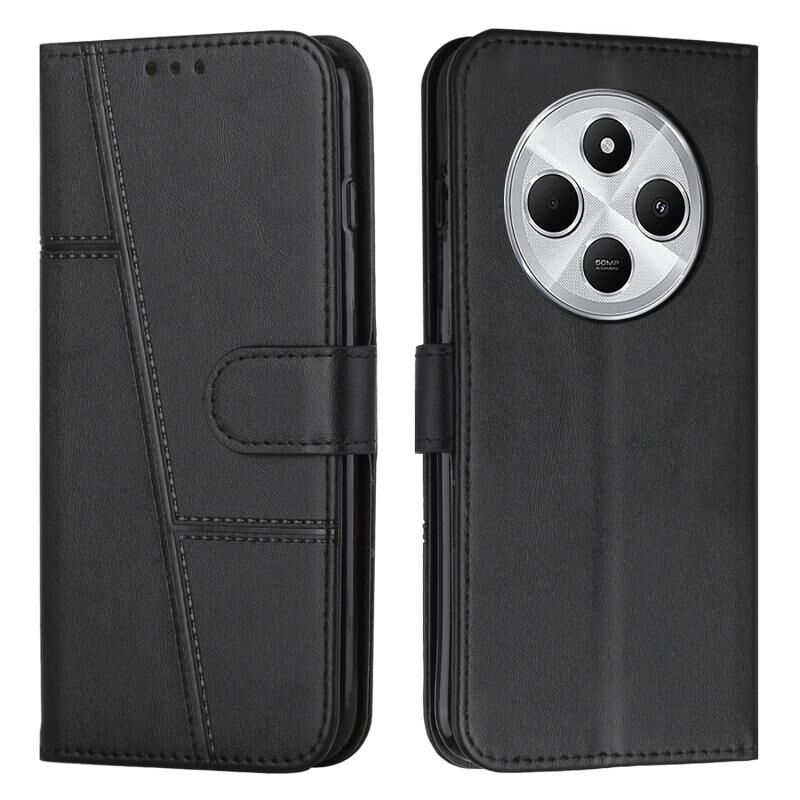 For Redmi 14C 4G Stitching Calf Texture Buckle Leather Phone Case(Black)