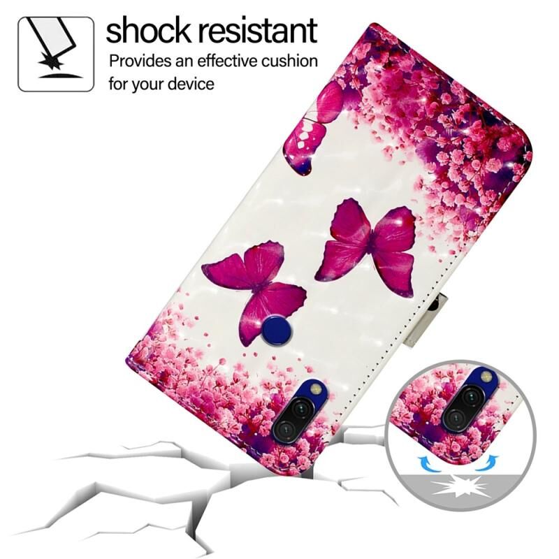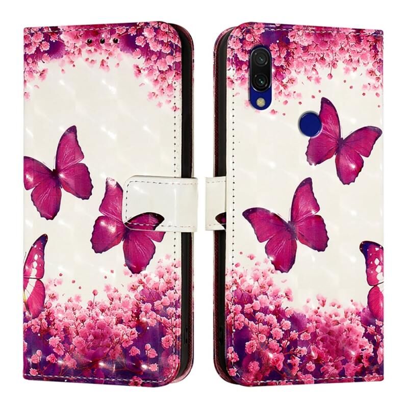 Θήκη τηλεφώνου δερμάτινη με οριζόντιο άνοιγμα και τρισδιάστατη ζωγραφική για Redmi 7 (Ροζ Πεταλούδα)