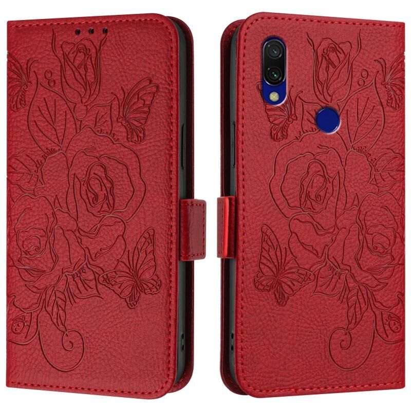 Για Redmi 7 ανάγλυφο Rose RFID Anti-theft δερμάτινη θήκη τηλεφώνου (κόκκινο)
