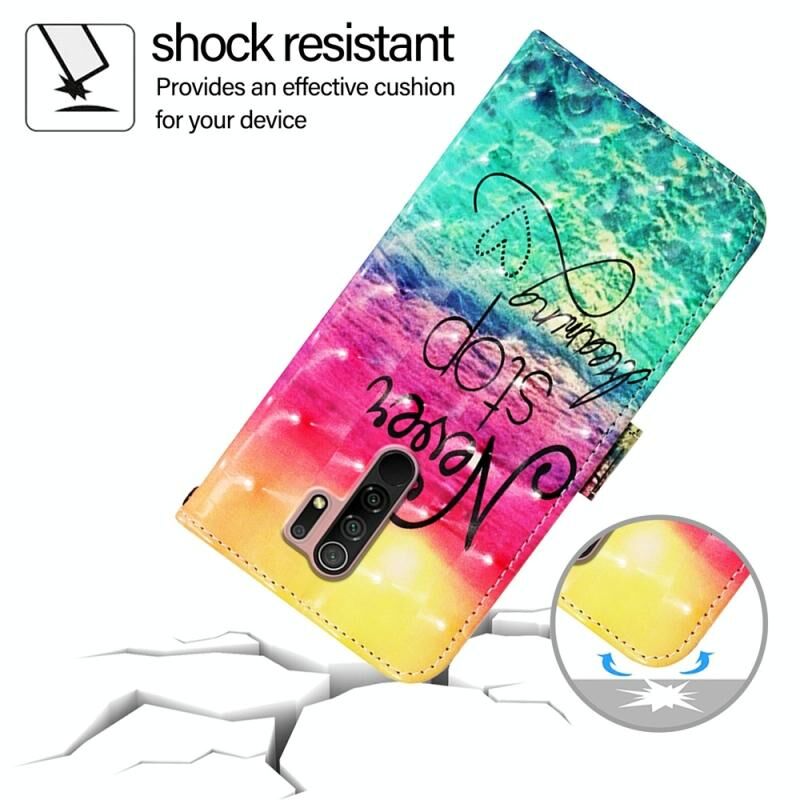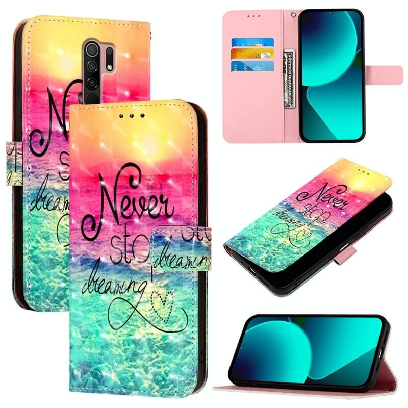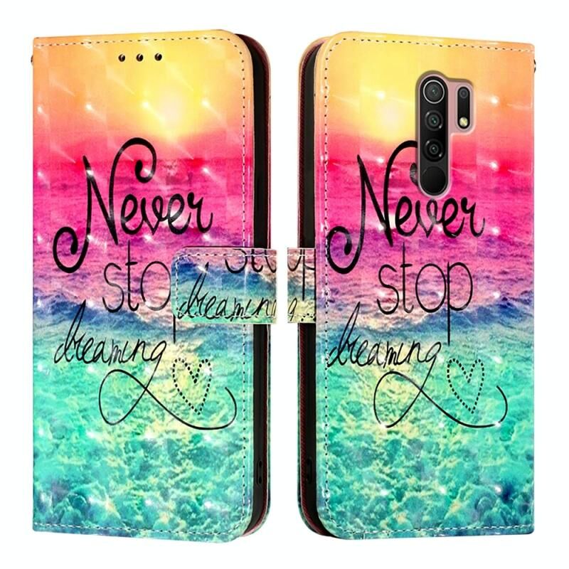 Για Redmi 9 / 9 Prime India 3D Ζωγραφική Οριζόντια Θήκη Δέρματος Φλιπ (Κυνηγώντας Όνειρα)