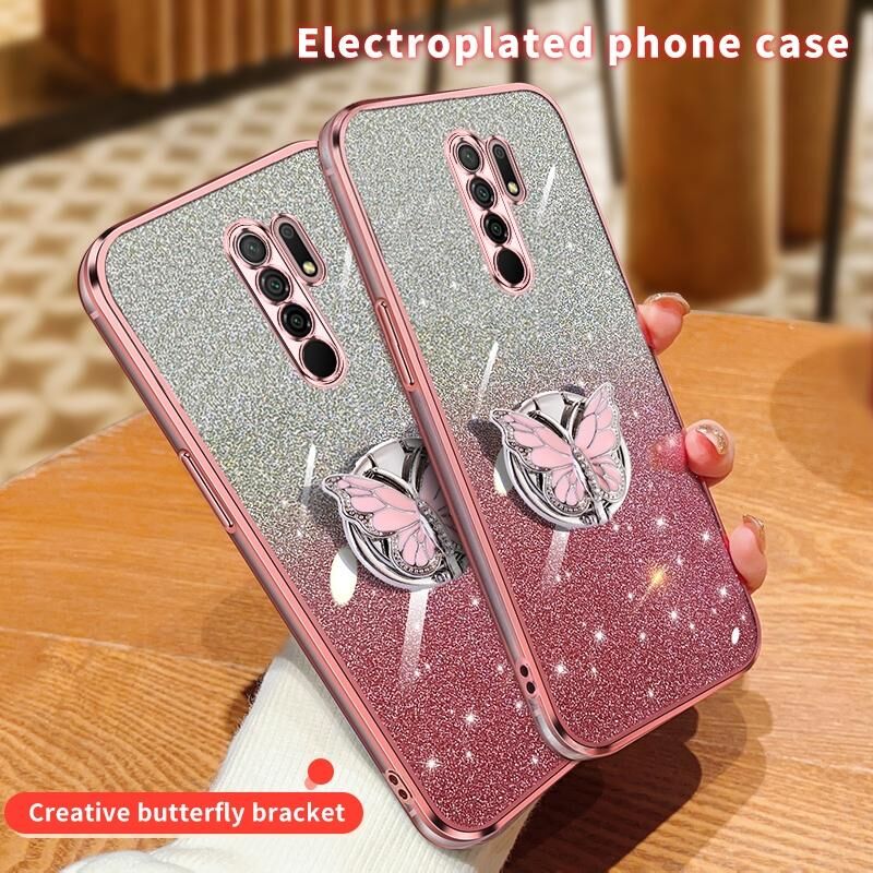 Για Redmi 9 Επιμεταλλωμένο διαβάθμιση Glitter πεταλούδα κάτοχος TPU τηλέφωνο υπόθεση (ασημί)