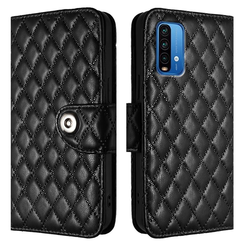 Για Redmi 9 Power / 9T Παγκόσμια Rhombic υφή Flip δερμάτινη θήκη τηλεφώνου με κορδόνι (μαύρο)