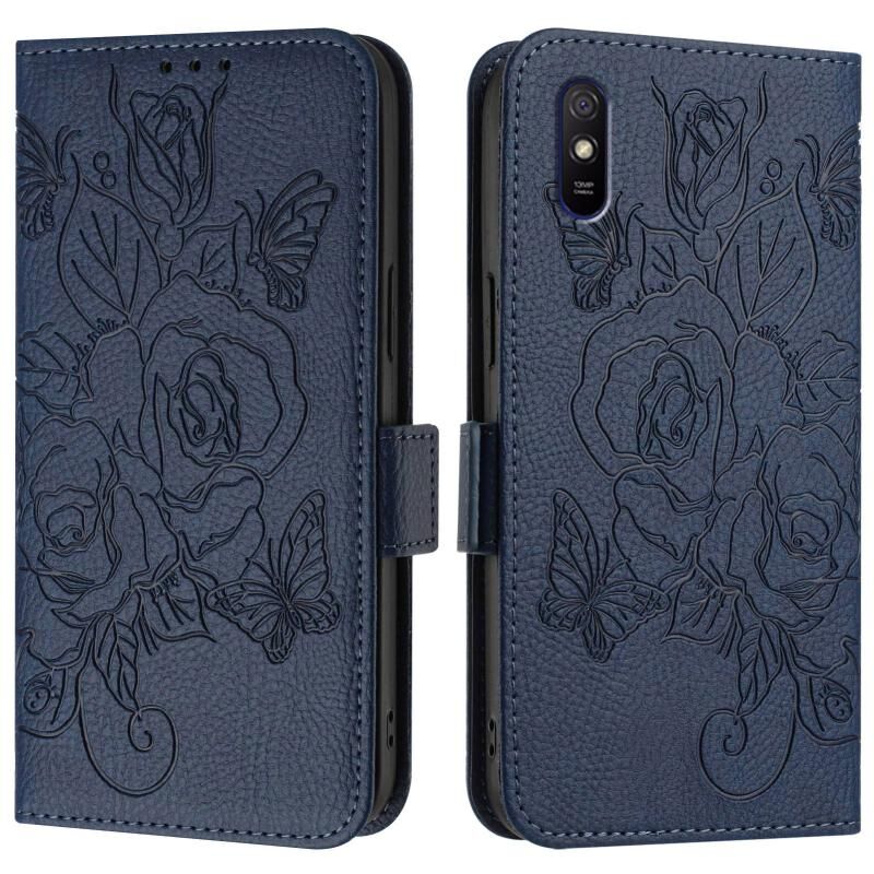 Για Redmi 9A / 9i / 9AT ανάγλυφο Rose RFID Anti-theft δερμάτινη θήκη τηλεφώνου (σκούρο μπλε)