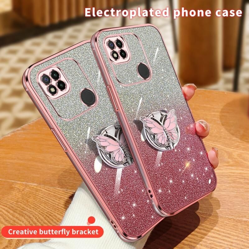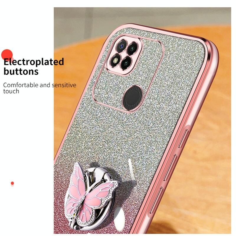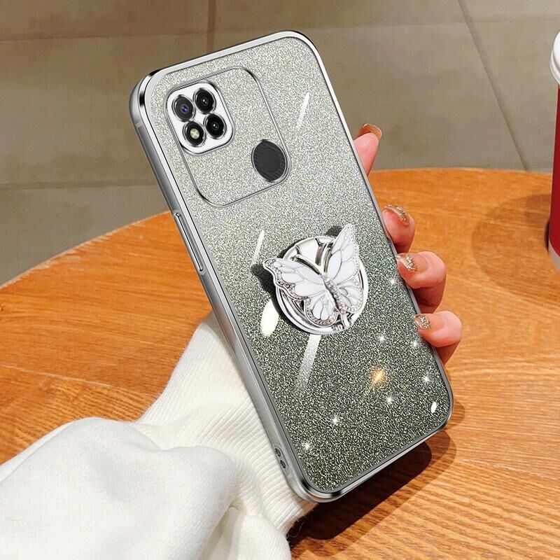 Για Redmi 9C / 10A επιμεταλλωμένο βαθμιδωτή Glitter πεταλούδα κάτοχος TPU τηλέφωνο υπόθεση (ασημί)