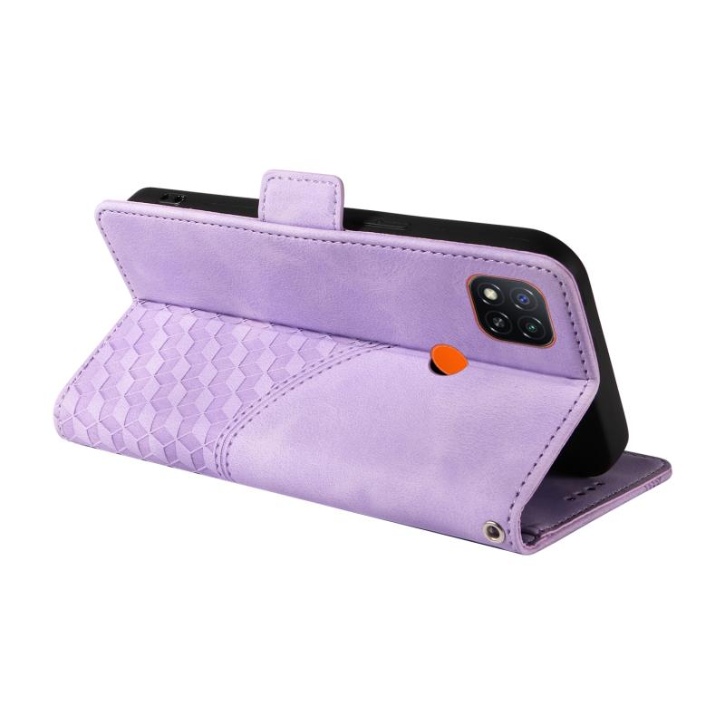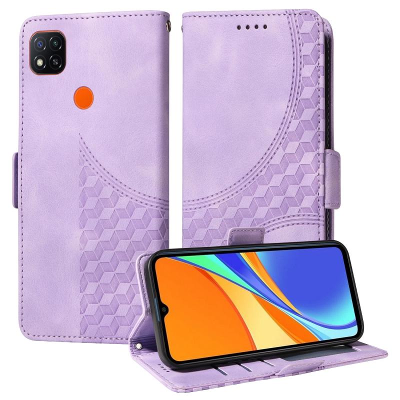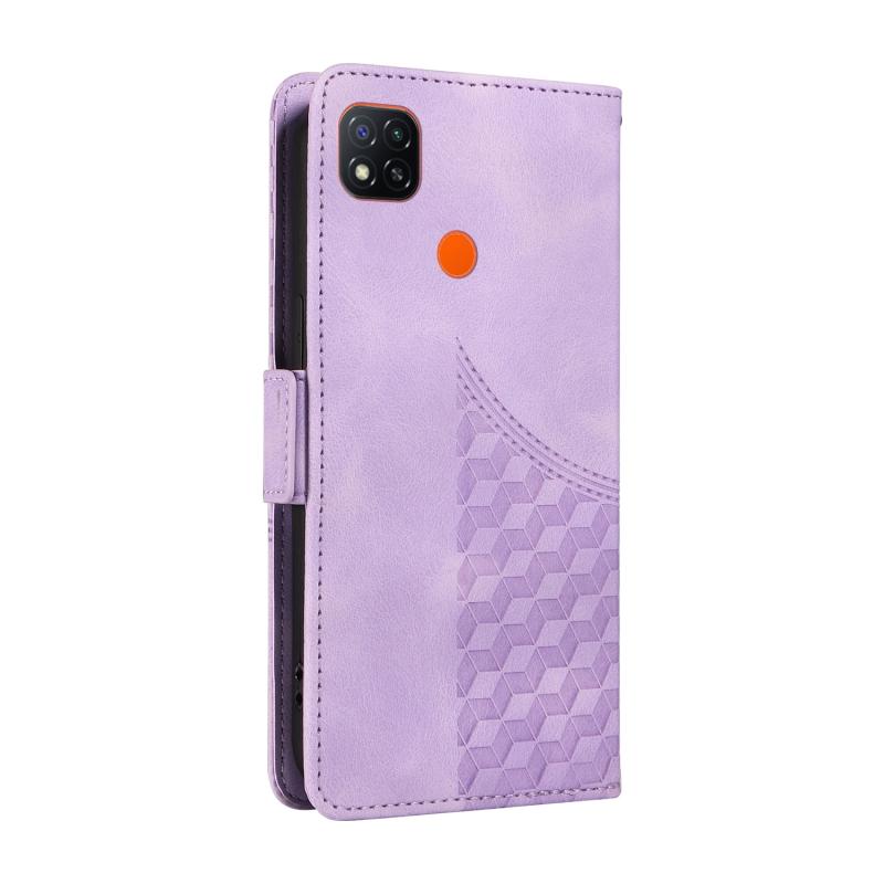 For Redmi 9C / 9 India Embossed Rhombus Starry Leather Phone Case(Purple)