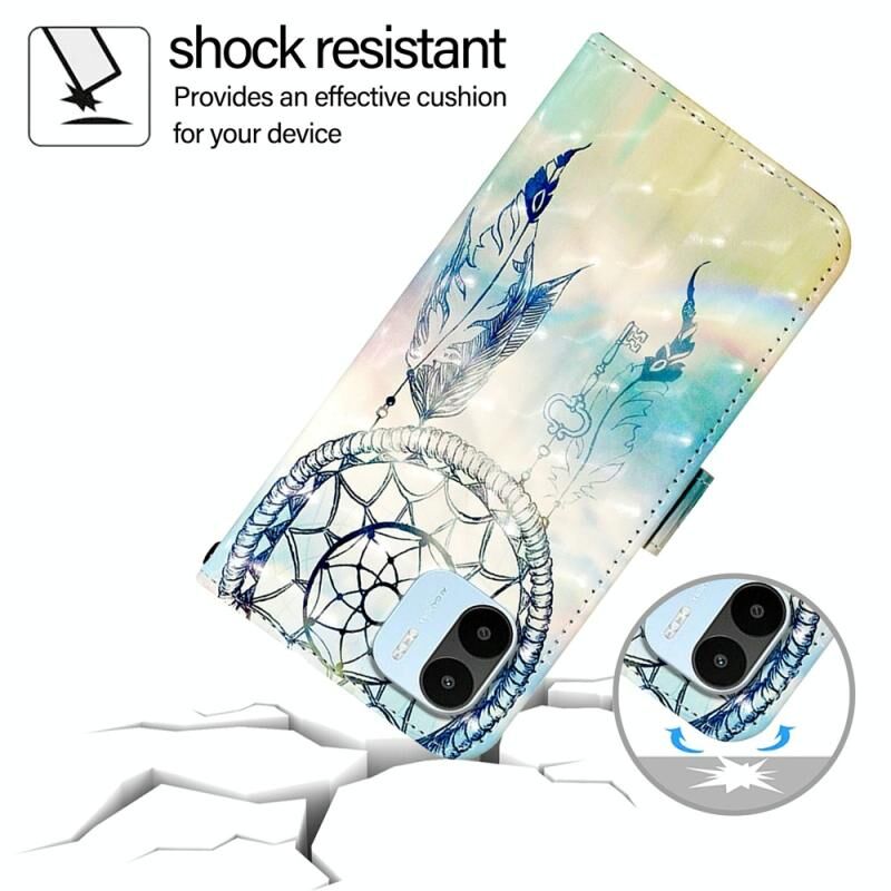Θήκη τηλεφώνου από δέρμα με οριζόντιο άνοιγμα και τρισδιάστατη ζωγραφική για Redmi A1 4G Global / Redmi A2 4G (Όνειρο Ανεμοχτύπων)