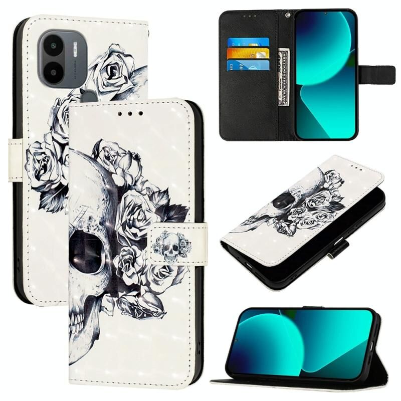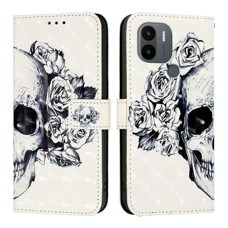 Θήκη τηλεφώνου από δέρμα με οριζόντιο άνοιγμα και τρισδιάστατη ζωγραφική για Redmi A1+ / A2+ / Poco C50 (Κρανίο)