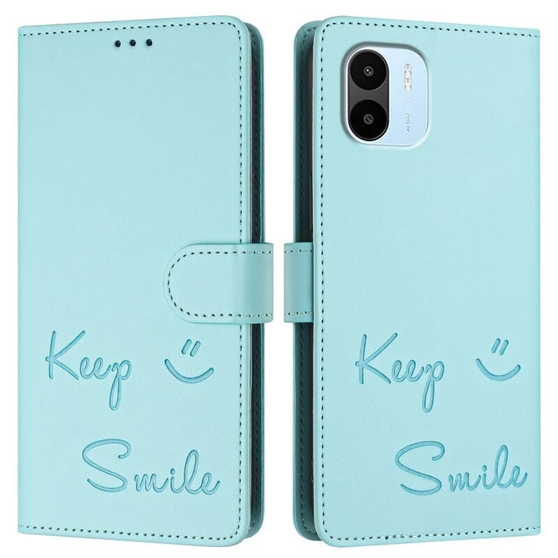 Για Redmi A1 / A2 Χαμόγελο ανάγλυφο RFID δερμάτινη θήκη τηλεφώνου (πράσινο χρώμα)