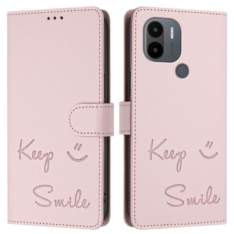 Για Redmi A1 + / A2 + χαμόγελο ανάγλυφο RFID δερμάτινη θήκη τηλεφώνου (ρόζ)