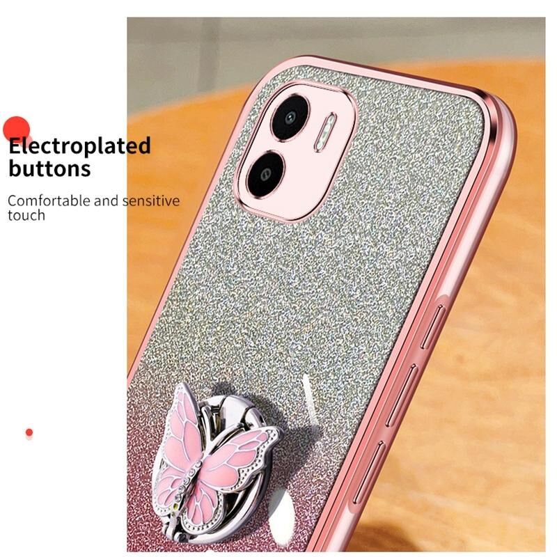 Για Redmi A1 Επιμεταλλωμένο διαβάθμιση Glitter πεταλούδα κάτοχος TPU τηλέφωνο υπόθεση (μαύρο)
