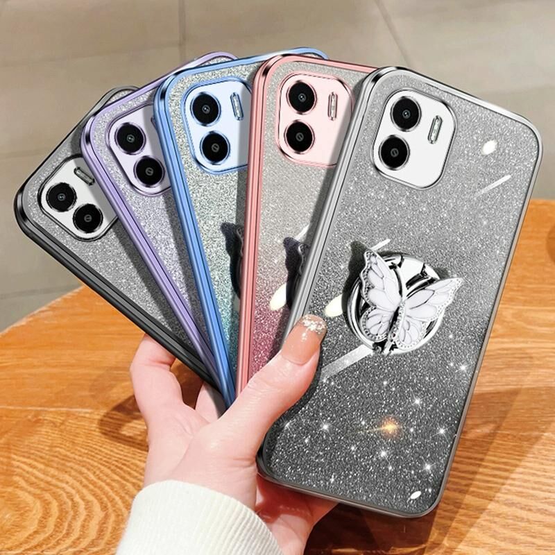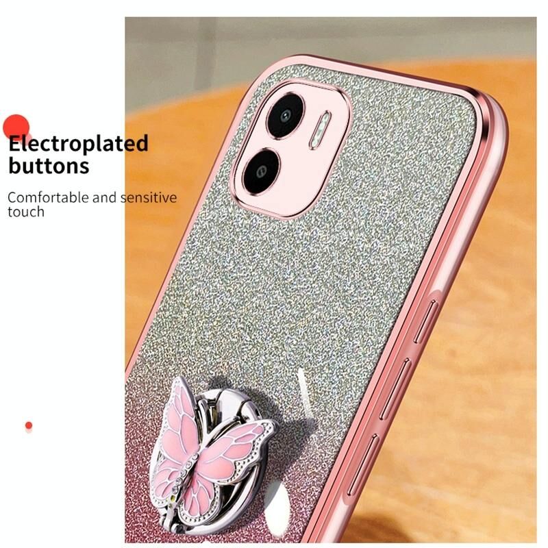 Για Redmi A1 Επιμεταλλωμένο διαβάθμιση Glitter πεταλούδα κάτοχος TPU τηλέφωνο υπόθεση (Sierra Blue)