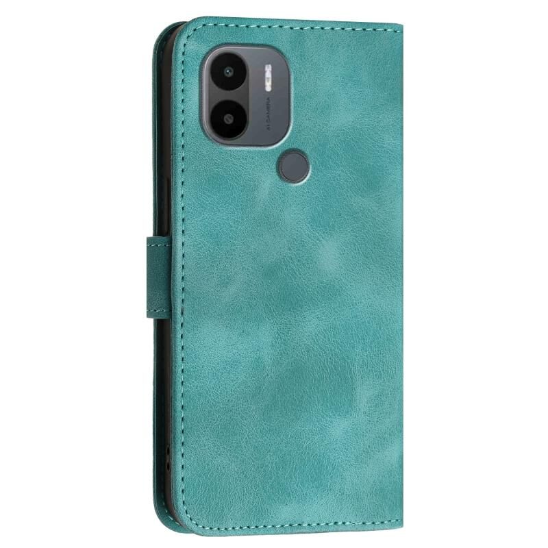 Θήκη τηλεφώνου δερμάτινη με ανάγλυφο σχέδιο πλέγματος και πεταλούδας για Redmi A1+ YX0080 με κορδόνι (Ανοιχτό μπλε)