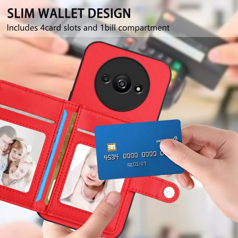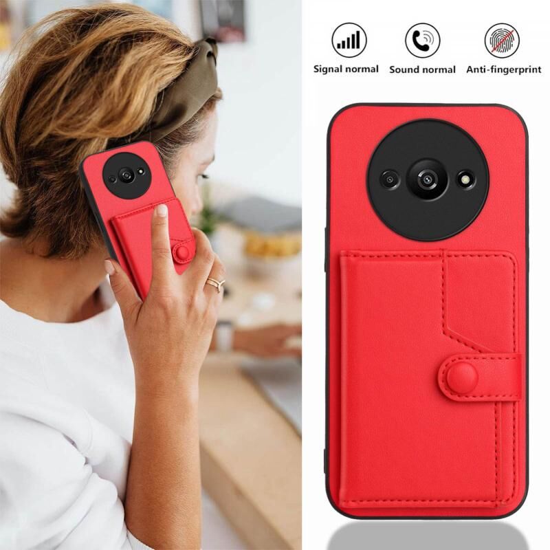Για Redmi A3 4G Global Button Card Bag RFID Anti-theft τηλέφωνο υπόθεση (κόκκινο)