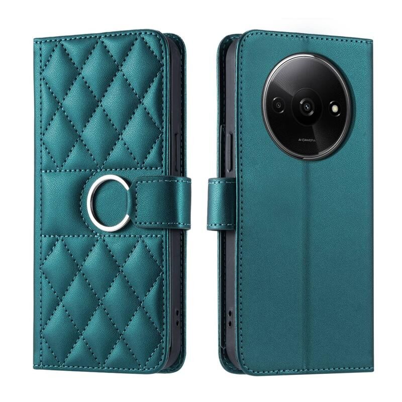 Για Redmi A3 4G Παγκόσμια δαχτυλίδι πόρπη Rhombic δέρμα τηλέφωνο υπόθεση (πράσινο)