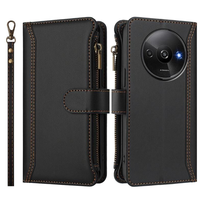 Για Redmi A3 / A3x / Poco C61 Μαγνητικό Κλείσιμο 9 Θήκες Κάρτας Δερμάτινη Θήκη με Φερμουάρ και Λουρί Χεριού (Σκούρο Μπλε)