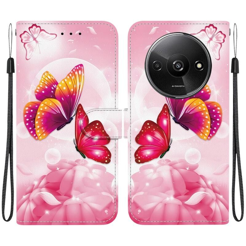 Θήκη τηλεφώνου από δέρμα με πολύχρωμη σχεδίαση κρυστάλλινης υφής για Redmi A3 (Χρυσά Φτερά Πεταλούδας)