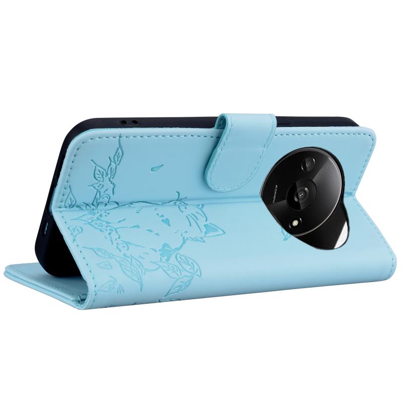 For Redmi A3 Cute Cat Embossed Leather Phone Case(Sky Blue)