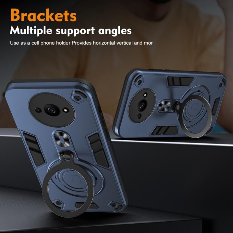 Για το Redmi A3 Μεταλλικό δαχτυλίδι 360 μοίρες περιστρεφόμενη θήκη τηλεφώνου PC Hybrid TPU (Ναυτικό μπλε)