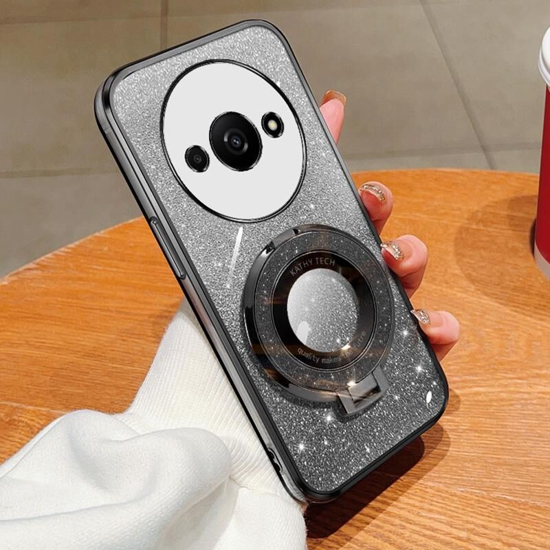 Για Redmi A3 Επιμεταλλωμένο διαβάθμιση Glitter στρογγυλή κάτοχος TPU τηλέφωνο υπόθεση (Μαύρο)