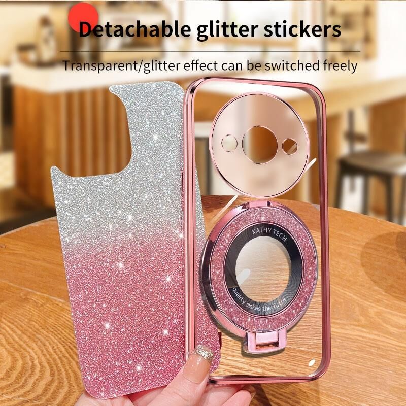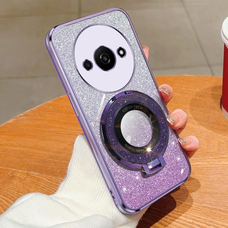 Για Redmi A3 Επιμεταλλωμένο διαβάθμιση Glitter στρογγυλή κάτοχος TPU τηλέφωνο υπόθεση (Μωβ)