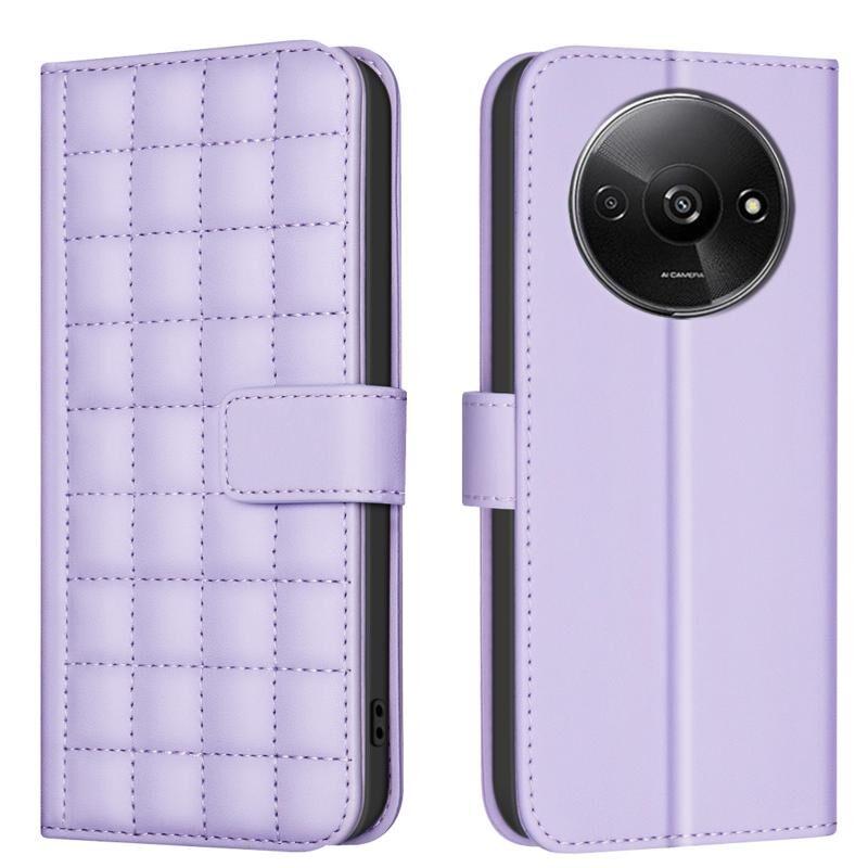 Θήκη δερμάτινη με τετράγωνο σχέδιο για Redmi A3 (Μωβ)
