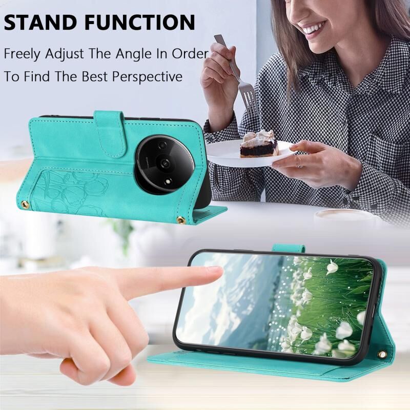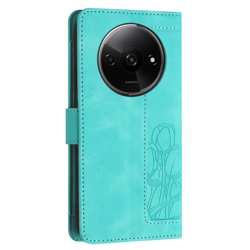 Θήκη τηλεφώνου από δέρμα με ανάγλυφα τουλίπες για Redmi A3 με κορδόνι (πράσινο)