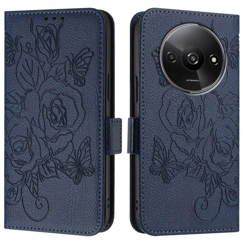 Για Redmi A3 / Xiaomi Poco C61 4G Παγκόσμια ανάγλυφο Rose RFID Anti-theft Δερμάτινη θήκη τηλεφώνου (σκούρο μπλε)