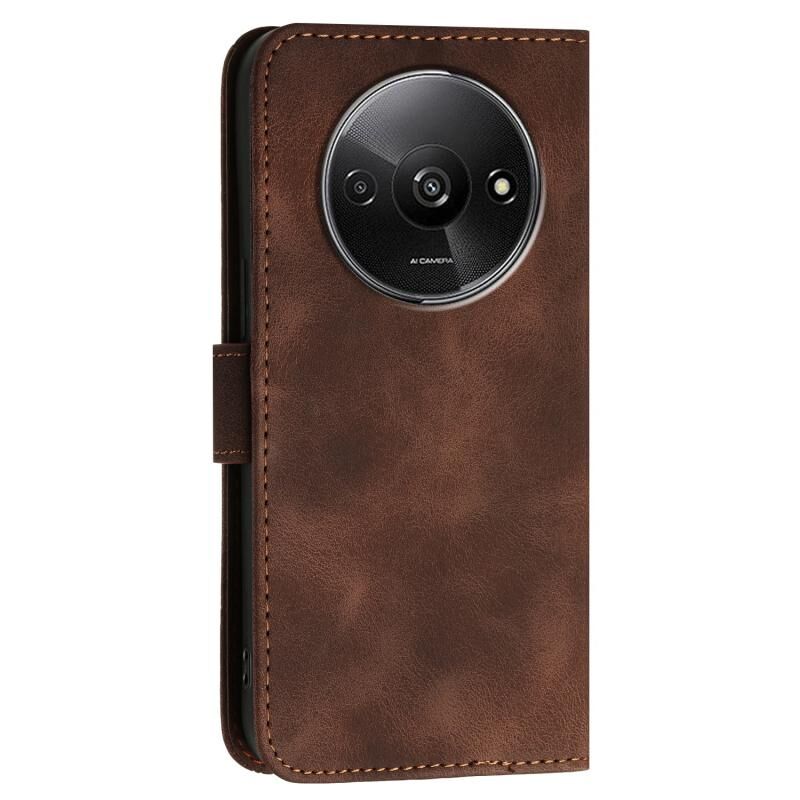 Θήκη τηλεφώνου δερμάτινη με ανάγλυφο σχέδιο πλέγματος και πεταλούδας για Redmi A3 YX0080 με κορδόνι (Καφέ)